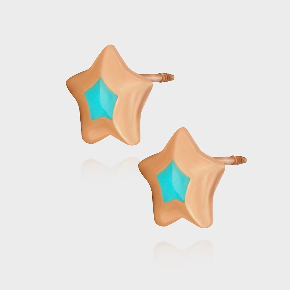 베티블루 585 750 14K 18k 귀여운 작은 별 에나멜 에폭시 저중량 금 귀걸이 피어싱