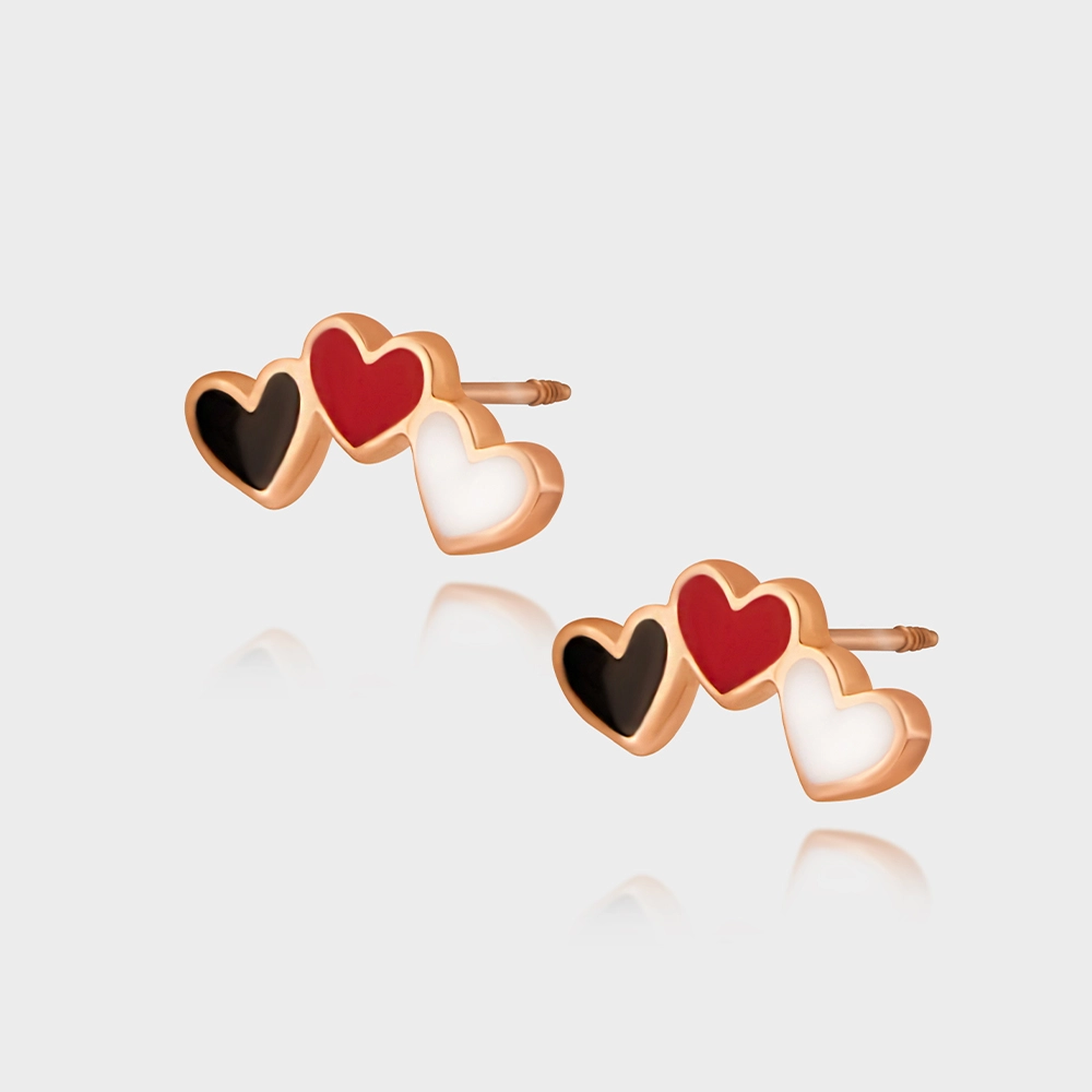 베티블루 585 750 14K 18k 데일리 트리플 하트 에나멜 에폭시 저중량 금 귀걸이 피어싱