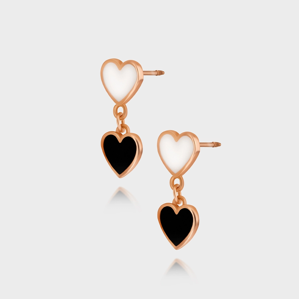 베티블루 585 750 14K 18k 체인 드롭 하트 에나멜 에폭시 저중량 금 귀걸이 피어싱